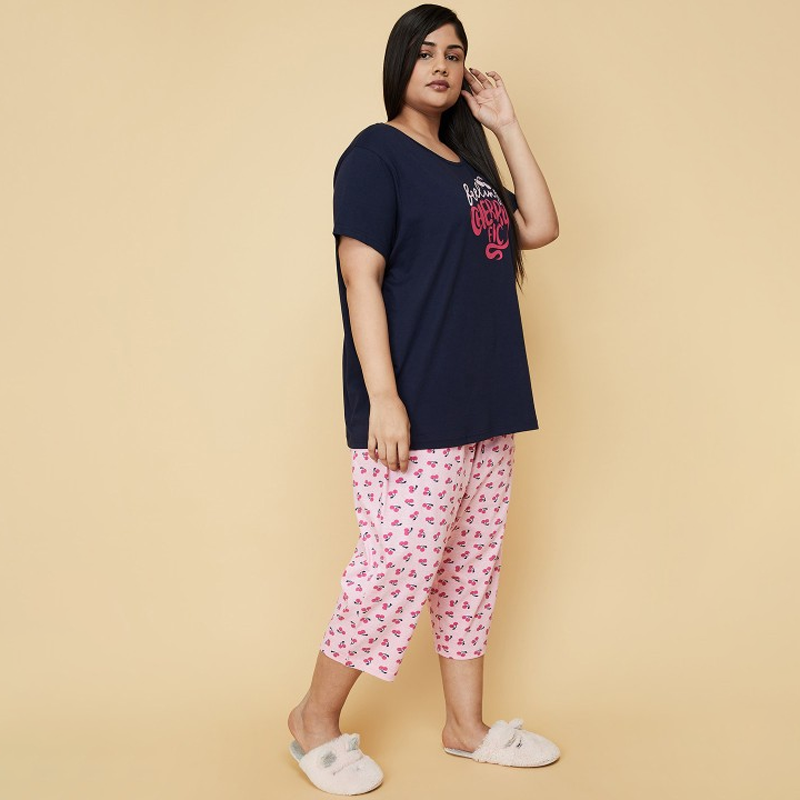 0 review(s) for "Women Plus Size Navy Blue & Pink Printed Pure Cotton Night suit"